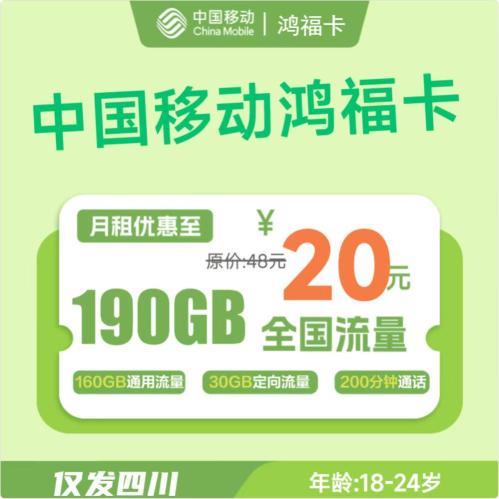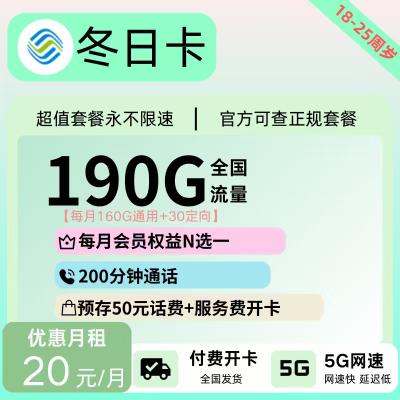 20元=160G通用+30G定向+200分钟+会员N选一,3年套餐,到期根据政策续约