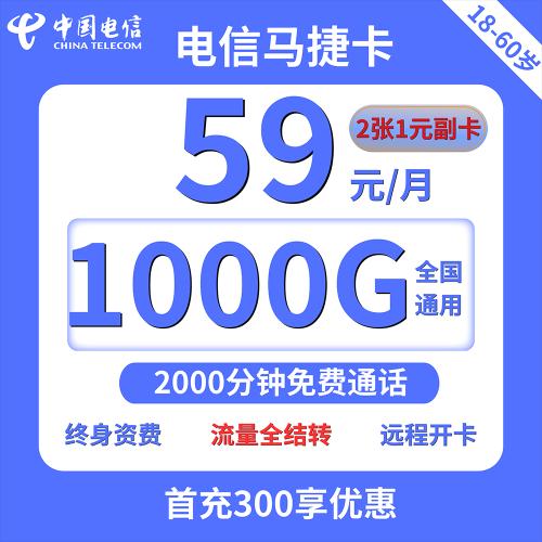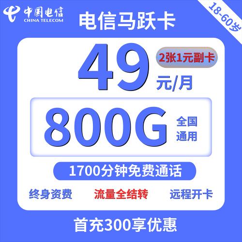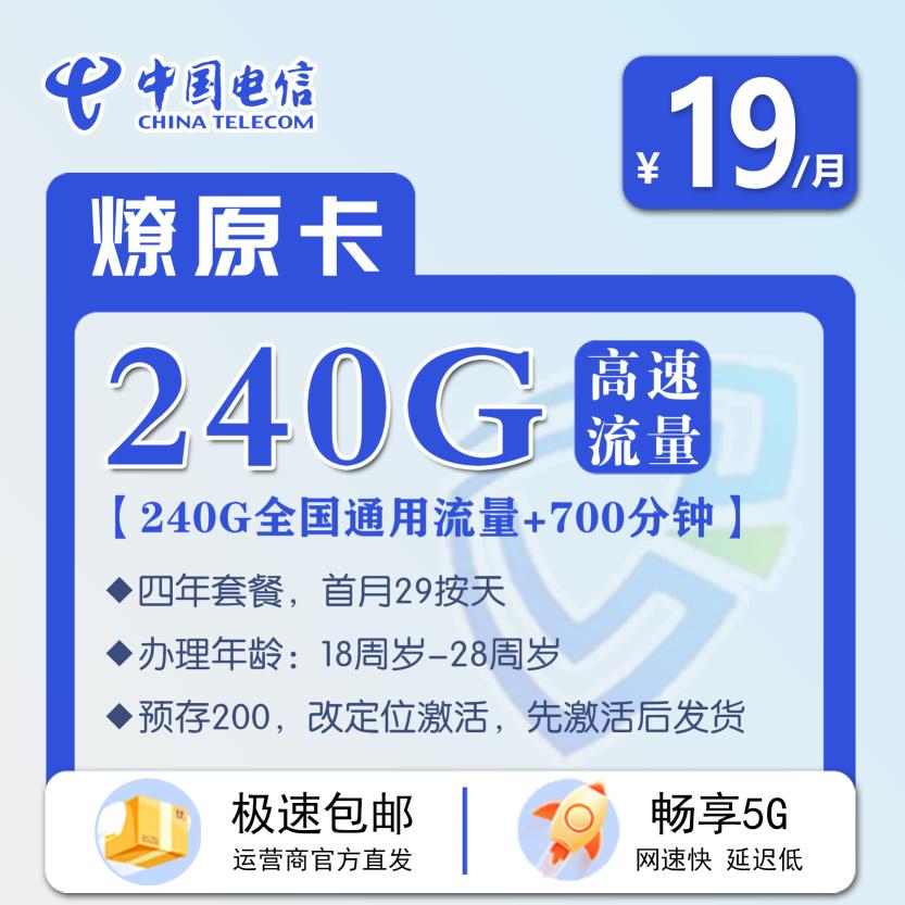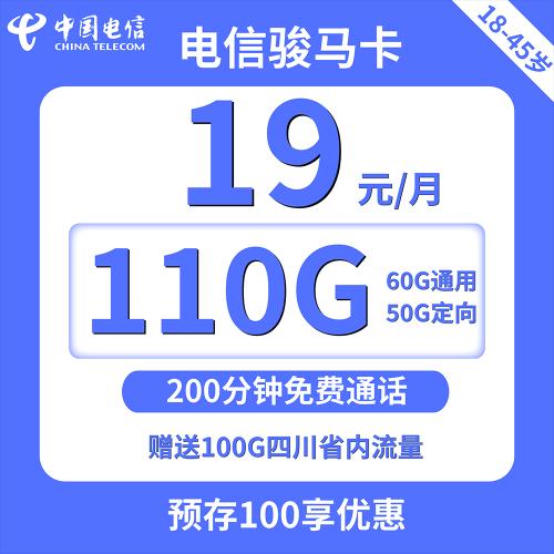 (18-45岁)四年电信骏马卡19元包60G通用➕50定向➕200分钟➕100G四川省内流量(省外忽略)➕360G校园流量(四川省内主城区可用省外忽略) (四年套餐到期可续)